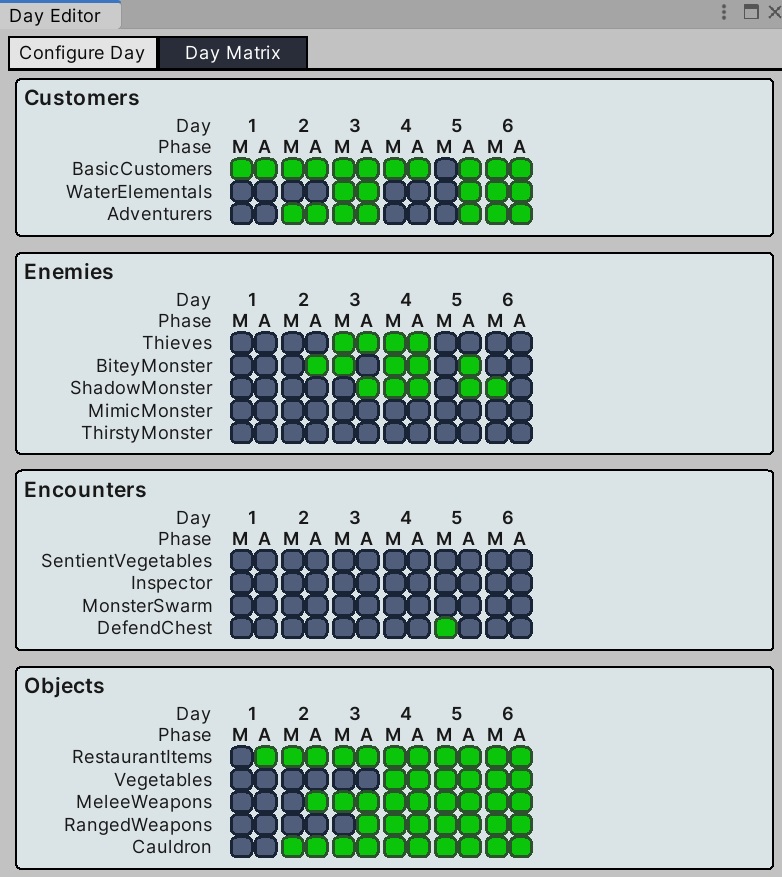 The level config editor tool enables selection of attributes for each individual phase of gameplay, including maps, events, dialogue and NPCs. Designers can configure each level phase independently without touching code, allowing rapid iteration on game flow and content.